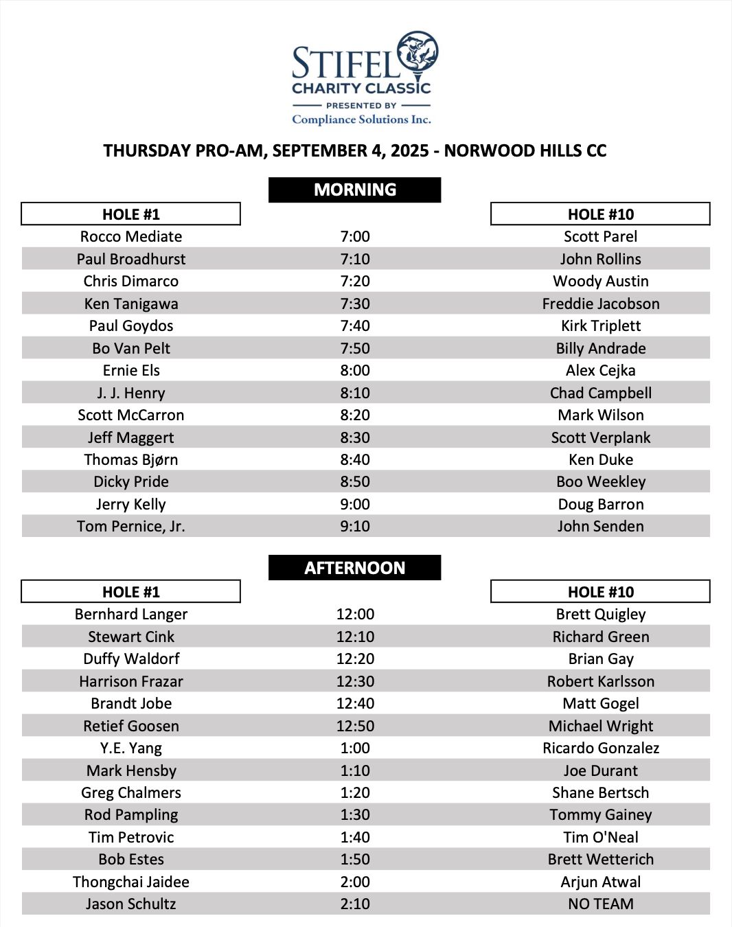 Special Tournament Announcement (6:15 p.m.) – Inside the Norwood Hills Ballroom, Stifel executives, PGA TOUR Champions officials, and Governor Mike Kehoe will unveil important news about the future of the Stifel Charity Classic.